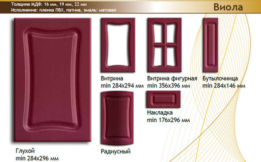 Мебельная Фабрика Владимир МФВ производит и изготавливает радиусные фасады нестандартного размера из МДФ для кухни, шкафа и для любой другой мебели. Размеры от 300 мм до 1000 мм., для разных серий величина различная. Стоит отметить, что ширина радиусных фасадов всегда постоянная. Обратите внимание, что толщина составляет 19 или 22 мм. Это важно помнить при заказе мебели из ЛДСП, у которых толщина по умолчанию 16 мм. Будь Ваша мебель из шпонированного, крашенного МДФ или в пленке ПВХ, Вы можете не беспокоиться, она прослужит при правильной эксплуатации очень долго, сохраняя привлекательный внешний вид для нескольких Ваших поколений.